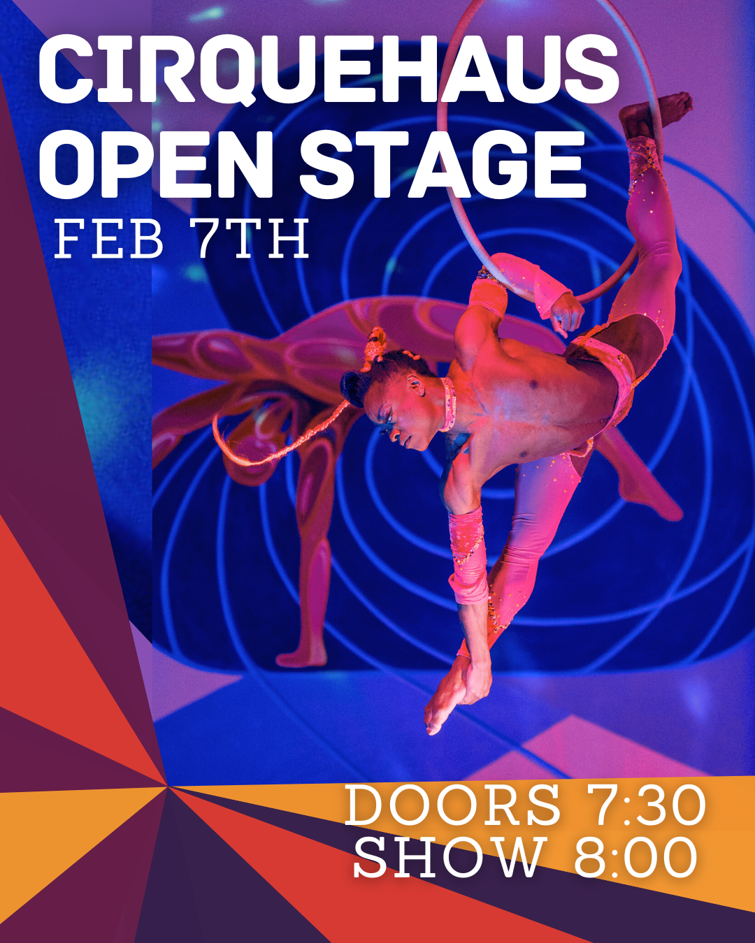 The next CirqueHaus Open Stage will be on Saturday, Feb 10th, 2024, and we have an AMAZING LINE UP coming at ya!